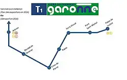 - ↑ « Informations sur la ligne T1 sur le site de Tisseo », sur tisseo.fr, (consulté le ).