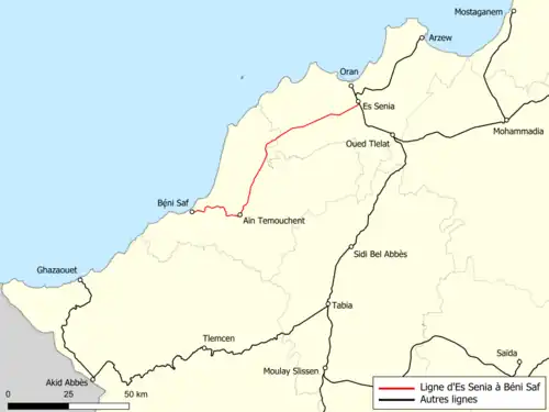 Lors du nouveau plan ferroviaire des années 1980, un prolongement de 20 km à la ligne d'Es Senia à Aïn Témouchent est créé pour une ligne de fret jusqu'à la cimenterie de Béni Saf[3].
