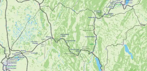 | Villes desservies | Lyon, Ambérieu-en-Bugey, Culoz, Valserhône, Genève | |