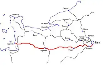 | Communes desservies | 7 : Paris, Versailles, Dreux, Argentan, Flers, Vire, Granville | ||||||||||||||||||||||||||||||||||||||||||||||||||||||||||||||||||||||||||||||||||||||||||||||||||||||||||||||||||||||||||||||||||||||||||||||||||||||||||||||||||||||||||||||||||||||||