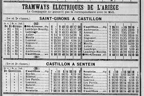 - ↑ Joseph Fra, « Le Tramway de Saint-Girons à Castillon (suite) », L'Ariège pittoresque, , p. 5-6 (lire en ligne)