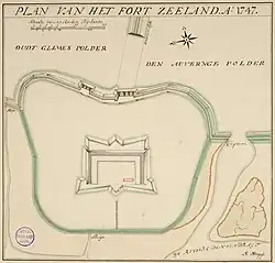 - Le Fort Zeelandia (ou Fort Zeeland, 1620), construit pour remplacer le Fort De Drie Sluijskens. Ce fort était à l'origine situé entre les marais salants de l'Eendracht (emplacement). Avec la construction de l' Auvergnepolder (1692) et de l' Oud Glimespolder (1688), il y avait une liaison permanente avec le continent. Le fort a été modifié plusieurs fois (notamment en 1747 et 1785). Après la vétusté, les derniers vestiges ont disparu en 1953 lors d'inondations catastrophiques.
