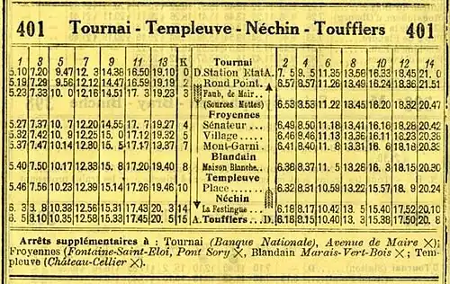 - 401A en , numéro partagé à partir du avec la ligne 401B Kain Station - Tournai Grand-Place[10] ;