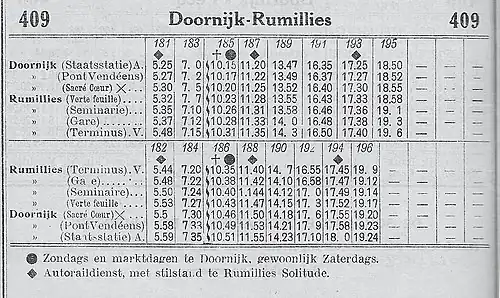 - ↑ Indicateur officiel : n°1 de 1950, Société nationale des chemins de fer belges (SNCB), du au (lire en ligne)