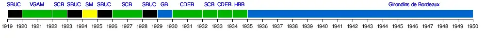 | 1930 | Sport athlétique bordelais - Girondins[12] (ou Cerceau Gaulois Bouscatais ?) (1) | - | - | - |