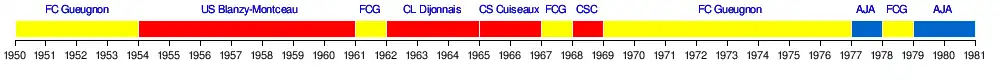 - Domination depuis 1919, en Bourgogne-Franche-Comté jusqu'en 1947, puis Bourgogne jusqu'en 2016