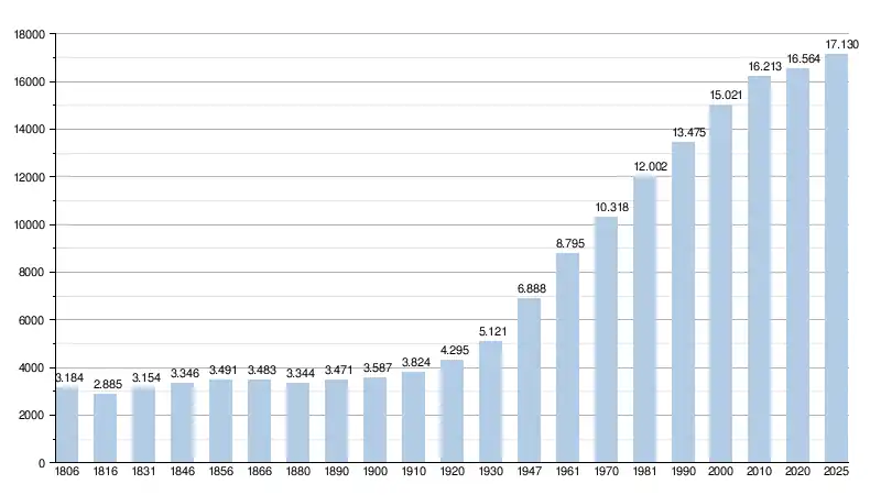 - Source : DGS - Remarque: 1806 jusqu'à 1981=recensement; depuis 1990=nombre d'habitants chaque 1er janvier[4]