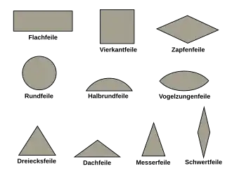Il en existe de multiples formes (plate, ronde, carrée, en feuille de sauge, en pilier) permettant de s'adapter à la forme à obtenir, avec des dessins de la râpe, plus ou moins grossier et, de formes différentes en fonction du matériau à travailler.