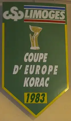 Lors de la préparation de la saison 1981-1982, pendant que le Palais des sports de Beaublanc s'érige peu à peu, l'équipe technique du CSP construit un collectif capable de relever un double défi, celui de championnat national, mais aussi le défi européen de la Coupe Korać, pour laquelle le CSP s'est qualifié la saison précédente. Trois recrues viennent renforcer l'équipe : le meneur français Jean-Michel Sénégal[46], Edward Murphy[47] et le pivot américain Irvin Kiffin[48]. Dès la saison lancée, le CSP domine les favoris de la Nationale I (actuelle ProA). Beaublanc est inauguré le [49] lors du match Limoges CSP - ASVEL. Le Cercle Saint-Pierre termine deuxième de la saison 1981-1982, derrière Le Mans. En Coupe Korać, Limoges fait un parcours de qualité, qui l'amène en finale. C'est ainsi que le , à Padoue, en finale contre un club croate, le KK Šibenka, Sibenik s’appuie sur son jeune virtuose, Dražen Petrović, âgé seulement de 17 ans ! Limoges offre à la France la première victoire (90-84) d'une équipe nationale dans une compétition européenne[50]. Dans sa lancée, le CSP, dont le parcours en coupe l'amène aussi jusqu'en finale, remporte son premier titre national, la Coupe de la Fédération en dominant l'ASVEL. Le match de la finale se joue à Reims, dans la salle René-Tys et le score de Limoges, qui gagne par 116 à 100, doit beaucoup aux 45 points de Murphy. La Coupe Korać et la Coupe de la Fédération en poche, le CSP s'affirme, à partir de la saison 1981-1982 comme le digne successeur de l'ASVEL[51].