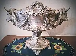 La limousine est fortement liée à sa région d'origine, et notamment à ses conditions de milieu particulières auxquelles elle s'est adaptée au cours du temps, et aux éleveurs limousins qui l'ont sélectionnée sur plusieurs générations pour en faire ce qu'elle est aujourd'hui. Toutefois, à la différence d’autres races, la limousine a été relativement peu représentée dans les œuvres des artistes locaux, montrant le manque d’appropriation de cette race en dehors de la sphère agricole. Quelques rares artistes locaux s’y sont intéressés, tels Jean Teillet, Sylvain Grateyrolle ou plus récemment Guy Salesse. C’est devant ce constat que le syndicat de la race limousine commanda trois biscuits en porcelaine à Raymond Laporte au début du XXe siècle, dans l’espoir de susciter un certain engouement des artistes pour ce thème. Ces œuvres, réalisées par Léon Bureau, mêlent porcelaine et vaches limousines, deux emblèmes de la région. La limousine n'est devenue un symbole de l’identité locale que plus récemment, dans les années 1970-1980[35], avec le développement de la limousine au-delà de sa région d’origine et l'importance qu'elle prend dans le monde de l'élevage. Laurent Bourdelas, spécialiste de la littérature du Limousin, a étudié la présence importante de la vache dans l'œuvre poétique de Joseph Rouffanche (Prix Mallarmé en 1984).