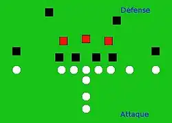 Position des linebackers (en rouge) dans un schéma de jeu classique.
