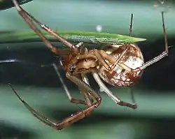 Cette araignée tisse une toile horizontale dans des buissons ou des haies en automne, et mange les insectes qui s'y prennent en attendant au-dessous[3].