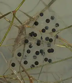 Elle se reproduit dans les retenues d'eau qui ont beaucoup de roseaux ou d'autres végétaux émergents, souvent dans des eaux temporaires. Environ 200-300 œufs sont pondus à chaque amplexus et chaque bouquet d'œufs peut contenir jusqu'à 35 œufs. Le têtard a une durée de vie minimum de 118 jours, à une température de 20 °C. La métamorphose se produit de janvier à mars, les jeunes grenouilles ressemblent à des adultes mais sont très petites et font seulement 9 à 13 mm de longueur.