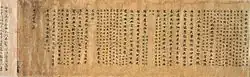 C'est le hasard d'une découverte archéologique qui a permis d'attester l'existence d'une littérature orale populaire pour cette époque. En effet, parmi les manuscrits de Dunhuang, découverts dans une des grottes du même nom au début du XXe siècle, une centaine de textes relèvent d'un genre appelé bianwen, écrit dans une langue classique vulgarisée. Faisant alterner vers et prose, ils sont parfois appelés « chantefables »[38]. Le bianwen s'est surtout développé entre les VIIIe et Xe siècles. Les textes sont à l'origine d'inspiration indienne et sont écrits en vue de populariser les canons du bouddhisme, tel le Mulian bianwen (Mulian étant le nom chinois de Maudgalyâyana), racontant la descente dans le plus profond des enfers de Mulian, parti à la recherche de sa mère. Mais les bianwen avaient aussi pour contenu des sujets profanes, tirés de l'histoire ou des légendes chinoises. Ils étaient récités à un auditoire auquel on présentait en même temps des rouleaux peints (bianxiang (zh)), d'où le sens probable du mot bianwen : « textes sur des scènes en images »[39].