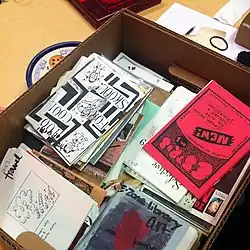 Parmi les méthodes de diffusion alternatives, citons les fanzines ou zine, très répandus et appréciés de la scène punk. Certains peuvent présenter des nouvelles sur la scène musicale locale, des analyses sociétales, des pamphlets et des essais sur l’actualité politique, ou encore des manuels de bricolage et de DIY. En France, on retrouve plusieurs bibliothèques et librairies spécialisées dans la distribution de ce type d’ouvrages, comme la Fanzinothèque à Poitiers établie en 1989 et le Fanzinarium à Paris[17]. Parmi les zines les plus connus, citons Maximum Rock and Roll, Punk Planet, Cometbus, Girl Germs, Kill Your Pet Puppy, J.D.s, Sniffin' Glue, Absolutely Zippo, Suburban Rebels et Punk Magazine. Parmi les journalistes et collaborateurs notables de magazines punk, citons Mykel Board, John Holmstrom, Robert Eggplant et Aaron Cometbus.