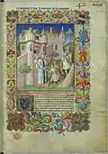 | Liber peregrinationis de Ricoldo da Monte Croce, traduit par Jean le Long | f.268-299v. | 28 miniatures : 2 du Maître de la Mazarine, 18 du premier anonyme, 7 du troisième anonyme | ![]() |