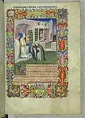 La dernière miniature, beaucoup plus tardive car remontant à 1470 environ, est ajoutée par Évrard d'Espinques, peintre de Jacques d'Armagnac (f.42v)[1].