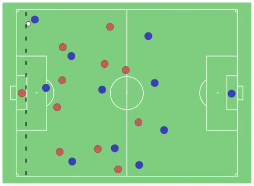 Un joueur se trouve en position de hors-jeu si n'importe quelle partie de sa tête, de son tronc ou de ses jambes est dans la moitié de terrain adverse (ligne médiane non comprise) et plus près de la ligne de but adverse que le ballon et l'avant-dernier adversaire.