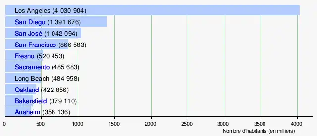 Population des dix villes de Californie les plus peuplées (2016)[4]