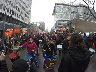- ↑ Philippe Boudreau, « La politisation comme composante active de l'évolution de la culture mouvementiste: étude du rapport à l'action politique de trois mouvements sociaux québécois, 1980-2009 », thèse de doctorat, Université d'Ottawa, 2015, p. 190-191.