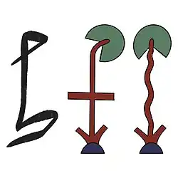 Il représente un plant de lotus (Nymphaea caerulea ou Nymphaea lotus) comprenant la feuille sans fleur, la tige et le rhizome. La tige n'est pas forcement droite, la feuille est parfois orientée vers le bas et il est barré d'un trait horizontal dans les exemples les plus récents. Il est translittéré ḫȝw ou ḫȝ.