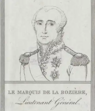 Le roi, en considération de quatre cents ans de services militaires les plus importants rendus à l’État par cette famille, et surtout de ceux de La Rozière, fait ériger la terre de Wagnon en marquisat de La Rozière par lettres patentes de 1780. En 1781, alors que la France soutient les colons américains dans leur guerre d'indépendance, il est nommé commandant du corps d’armée destiné à s’emparer des îles de Jersey et de Guernesey et est promu au grade de maréchal de camp.