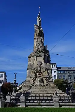 - Monument de l'affranchissement de l'Escaut, Anvers, lions et médaillons de Rogier, Lambermont et Marnix de Sainte-Aldegonde (inauguré le ) [1].