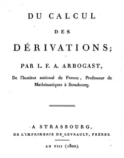 - ↑ « Arbogast, L. F. A (Louis François Antoine). Du calcul des dérivations », sur Gallica (consulté le )
