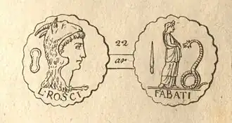 - (en) Cet article est partiellement ou en totalité issu de l’article de Wikipédia en anglais intitulé « Lucius Roscius Fabatus » (voir la liste des auteurs).