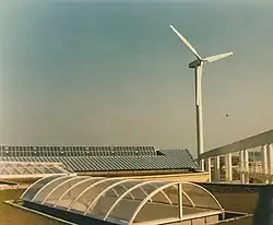 À l’origine, le lycée disposait d’une éolienne (de l’entreprise Seewind), haute de 35 mètres, équipée d'un rotor à 3 pales d'un diamètre de 22 m. Elle produisait 130-150 KW d’électricité et fournissait une partie de l’électricité dont le lycée avait besoin en hiver. En été, il était prévu de vendre le surplus à EDF. Véritable symbole de ce lycée novateur, l’éolienne a été démontée depuis, menaçant de tomber sur les habitations voisines lors d'une tempête.