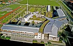 En outre, les toitures sont végétalisées ce qui permet de réaliser des économies d'énergie (régulation thermique ). Quant au choix des matériaux pour la construction (brique, peinture à l’eau, verre…), le projet a favorisé des matériaux recyclables et locaux (pierres et sable du béton viennent de la région de Boulogne, les bois utilisés sont tous européens pour ne pas utiliser de bois tropicaux…). Dès le début du chantier, le tri sélectif des déchets a été mis en avant[1],[7].