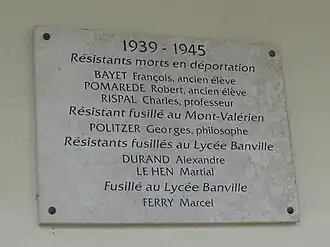 Durant la Seconde Guerre mondiale, des élèves et des professeurs du lycée sont morts pour la France pour faits de résistance :