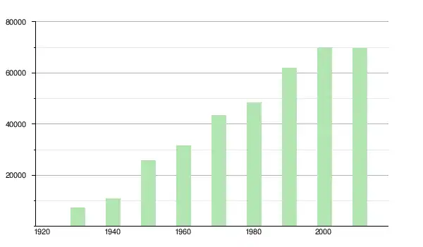 | 1950 | 25 823 | ▲ +135,14 % | |