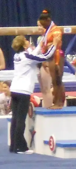 - ↑ (en) John Barr, « Former national team gymnast alleges abuse by doctor, Karolyis », ESPN, (consulté le ).