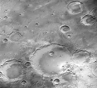 Mädler est un cratère d'impact de 125 km situé sur Mars dans le quadrangle de Sinus Sabaeus par 10,7°S et 2,7° E, à l'ouest de Noachis Terra.