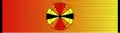 Le ruban de 37 mm présente un dégradé moiré du rouge vers le jaune évoquant la flamme, avec un liseré bleu marine de mm sur chaque bord et une rosette de 18 mm au centre :