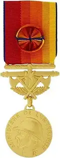 • La médaille d'Or qui peut être décernée aux titulaires de la médaille de vermeil avec rosette depuis cinq ans au moins et sans condition d'ancienneté aux personnels décédées dans l'exercice de leurs fonctions.
