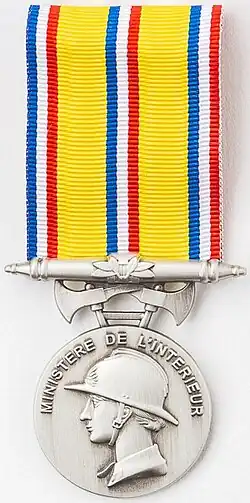 • La médaille avec rosette pour services exceptionnels, instaurée par décret du , qui honore les sapeurs-pompiers s'étant particulièrement distingués dans le cadre de leurs missions.