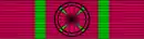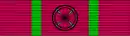 - Ruban : d'une largeur totale de 27 mm, de couleur amarante avec deux liserés verticaux de couleur verte de 2 mm, espacés de 10 mm au centre ; assorti d'une rosette de mêmes couleurs d'environ 10 mm de diamètre pour la médaille d'argent et d'environ 18 mm de diamètre pour la médaille d'or.