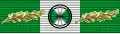 Art. 2. — L'insigne est suspendu à un ruban de 30 mm de largeur, de couleur verte, coupé en son milieu d'une bande blanche de 10 mm. Le ruban de la médaille d'or est orné d'une rosette, aux couleurs du ruban, d'un diamètre de 16 mm.