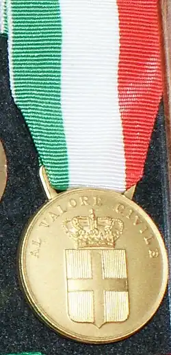 Médaille d'or de la valeur civile.