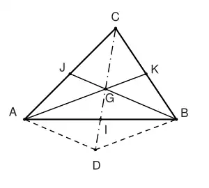 Dans le triangle ABC, si I est le milieu de [BC] alors Cette égalité est une conséquence immédiate de la définition de I comme isobarycentre de B et C (voir le § « Réduction » de l'article sur le barycentre).
