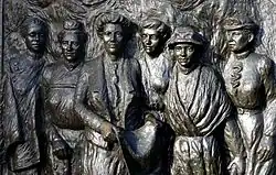 Les femmes représentées dans la sculpture sont (de gauche à droite) :