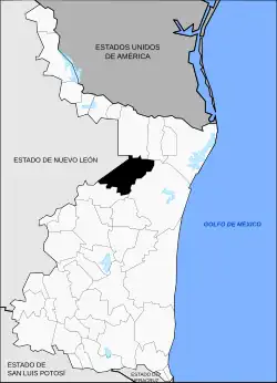 Elle est limitrophe au nord des municipalités de Río Bravo et de Reynosa, à l'ouest, dans l'État de Nuevo León, de celle de China, au sud, à nouveau dans l'État de Tamaulipas, de celle de Burgos, et à l'est de celle de San Fernando[4].