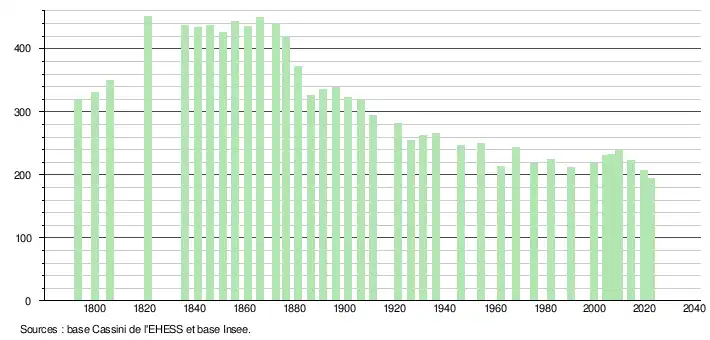 (Sources : Ldh/EHESS/Cassini jusqu'en 1999[18] puis Insee à partir de 2006[27].)