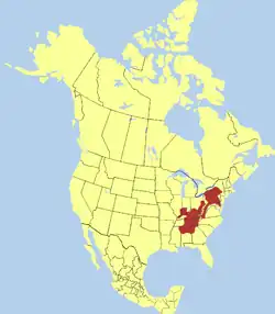 Cette espèce est endémique des Appalaches aux États-Unis. Elle se rencontre dans l'État de New York, en Pennsylvanie, en Ohio, en Virginie-Occidentale, au Virginie, au Maryland, au Kentucky, en Indiana, en Illinois, en Caroline du Nord, en Caroline du Sud, au Tennessee, en Géorgie, en Alabama et au Mississippi[1].