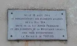 C'est à Méounes que, le 19 août 1944, les éléments avançés de la 3e division d'infanterie algérienne (3e DIA), unité de la 1re armée française et des élèments de la résistance locale, se sont rencontrés pour entreprendre la bataille de Toulon. Une plaque commémorative illustre cet évènement.