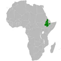 cet oiseau fréquente les gorges montagneuses boisées d'Éthiopie et d'Érythrée.