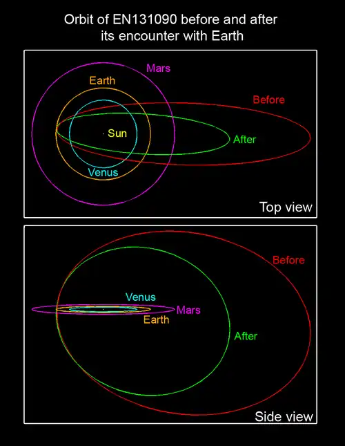 | Caractéristiques orbitales[6] | Avant la rencontre | Après la rencontre |