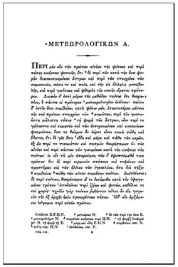 - ↑ Aristote, Météorologiques, I, 3, 339 b 20 sq.